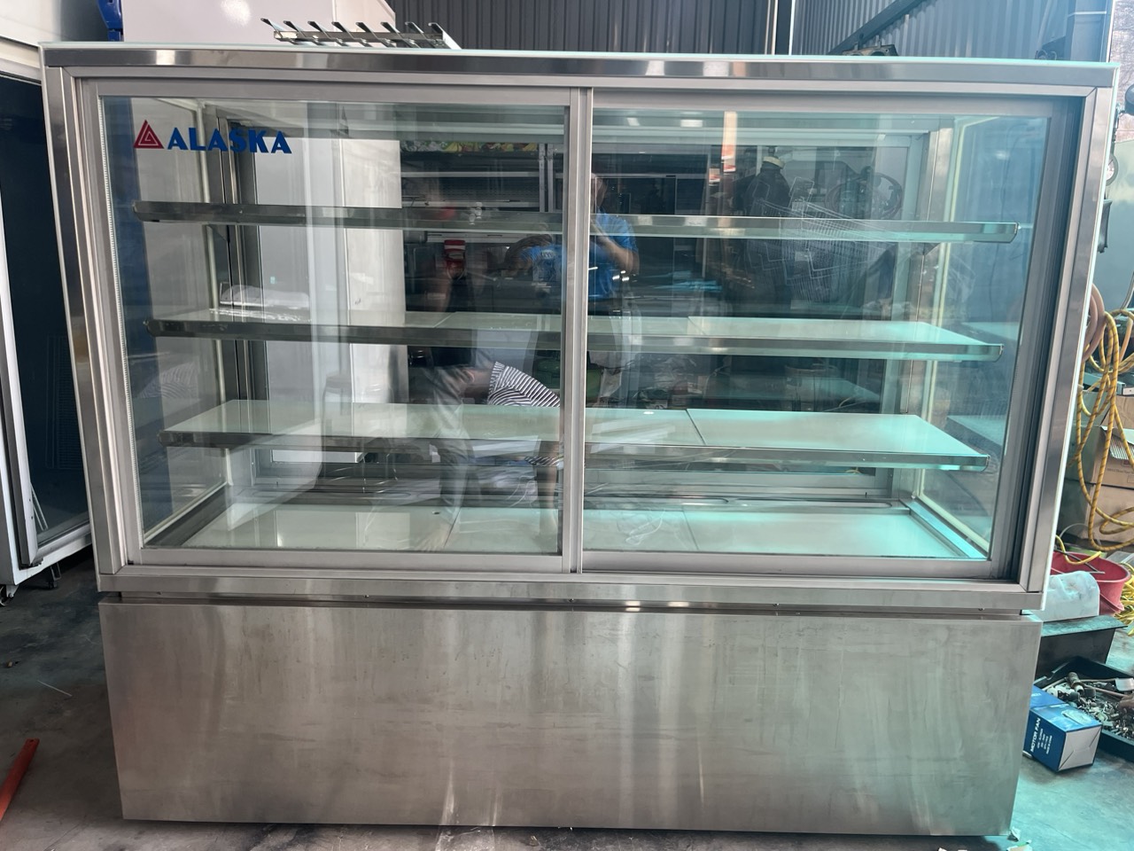 Tủ Trưng Bày Bánh Kem ALASKA Model G-600K3 /1,8m, kính lùa, mới 90%, 4 tầng kệ rộng,